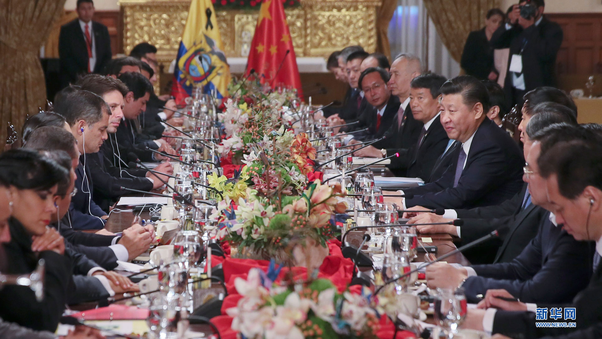當地時間11月17日,國家主席習近平在基多同厄瓜多爾總統科雷亞舉行會談。 新華社記者 鞠鵬 攝2016-11-18