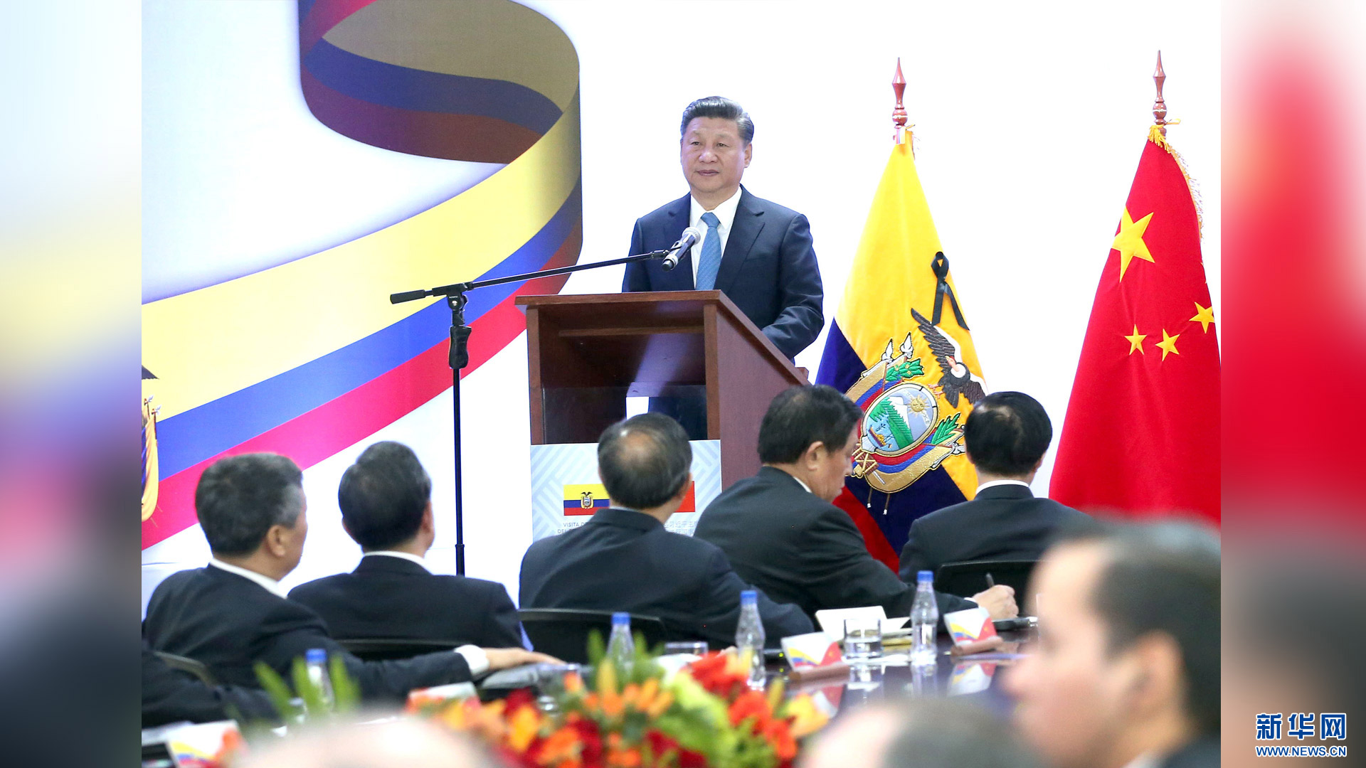 當地時間11月18日,國家主席習近平在基多同厄瓜多爾總統科雷亞共同出席中方援建的厄瓜多爾公共安全應急指揮中心聯合實驗室揭牌儀式,喬內醫院奠基、科卡科多-辛克雷水電站竣工發電視頻連線活動。這是習近平出席活動后致辭。新華社記者 馬占成 攝2016-11-19