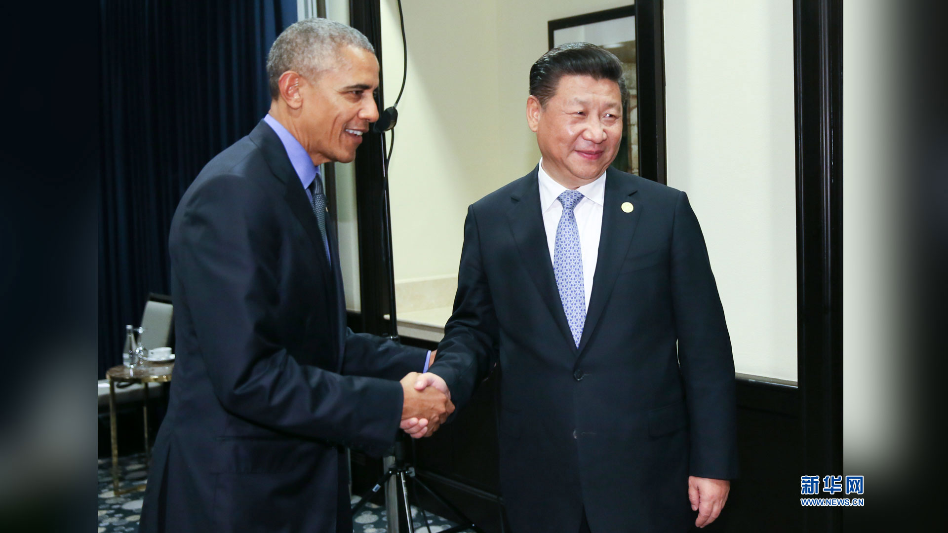 11月19日,國家主席習近平在利馬會見美國總統奧巴馬。 新華社記者蘭紅光 攝2016-11-20