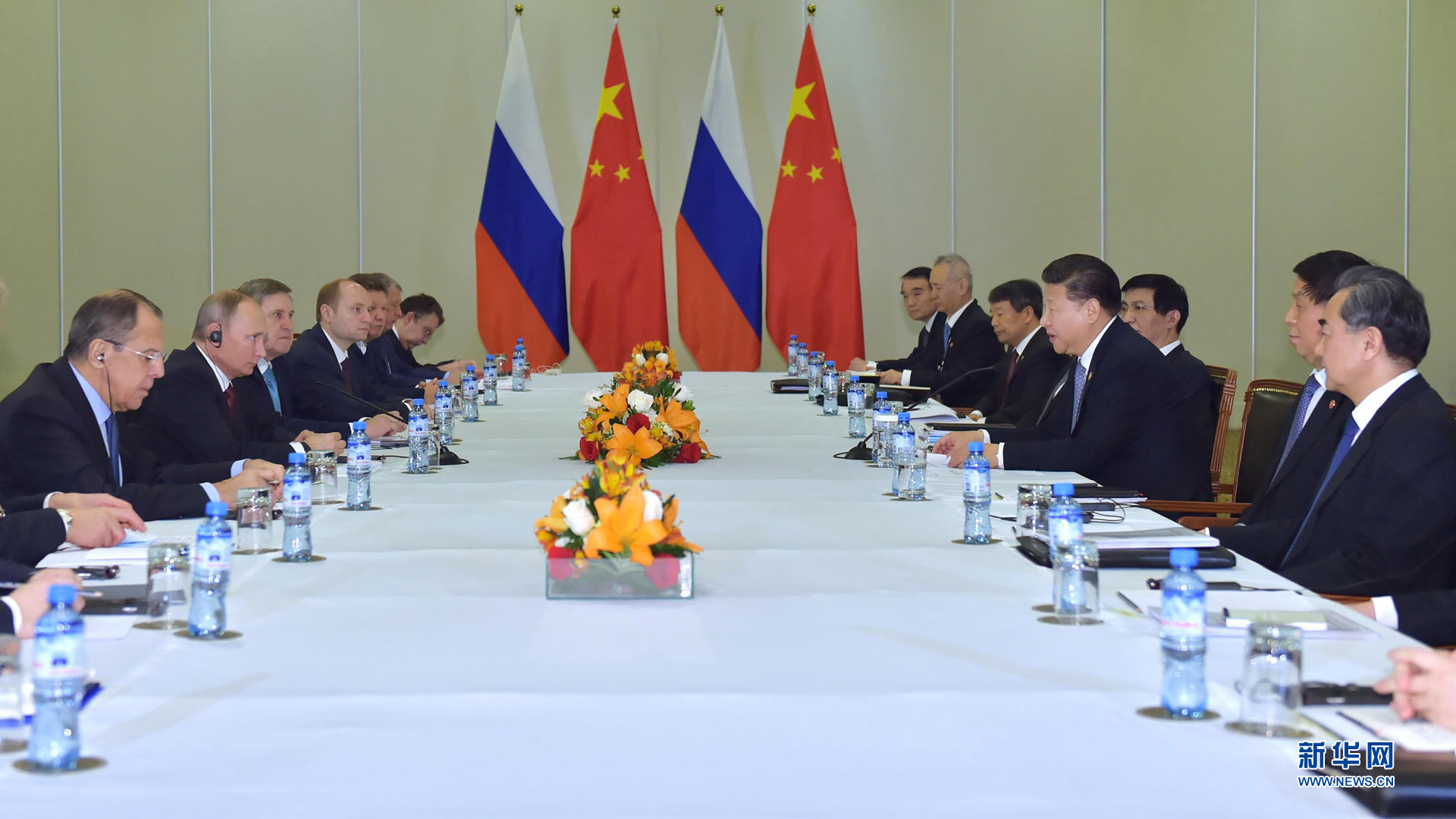 11月19日,國家主席習近平在利馬會見俄羅斯總統普京。 新華社記者李濤 攝2016-11-20