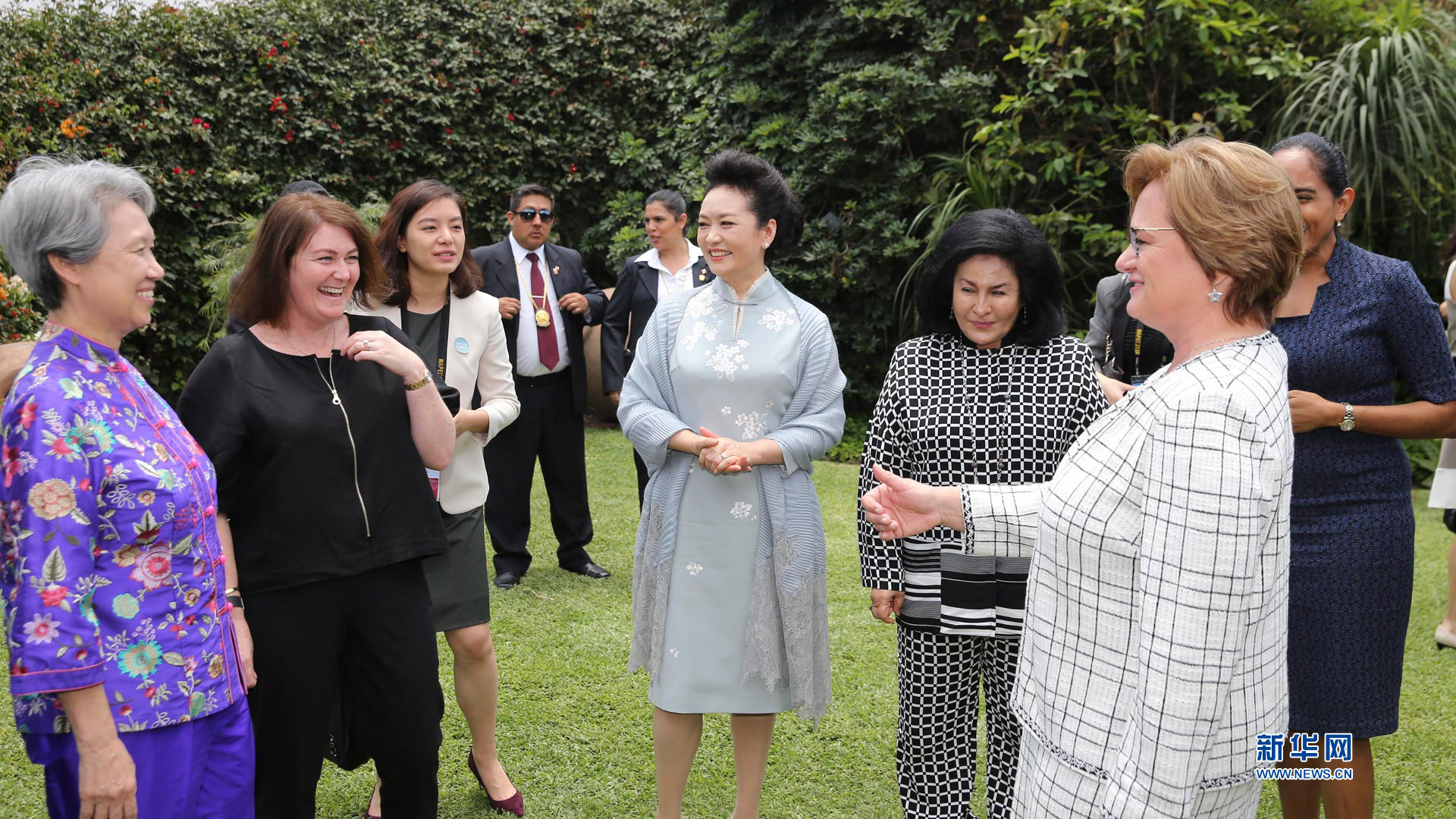 11月21日,國家主席習近平夫人彭麗媛在利馬參觀若望二十三世秘中學校。 新華社記者丁林攝2016-11-22