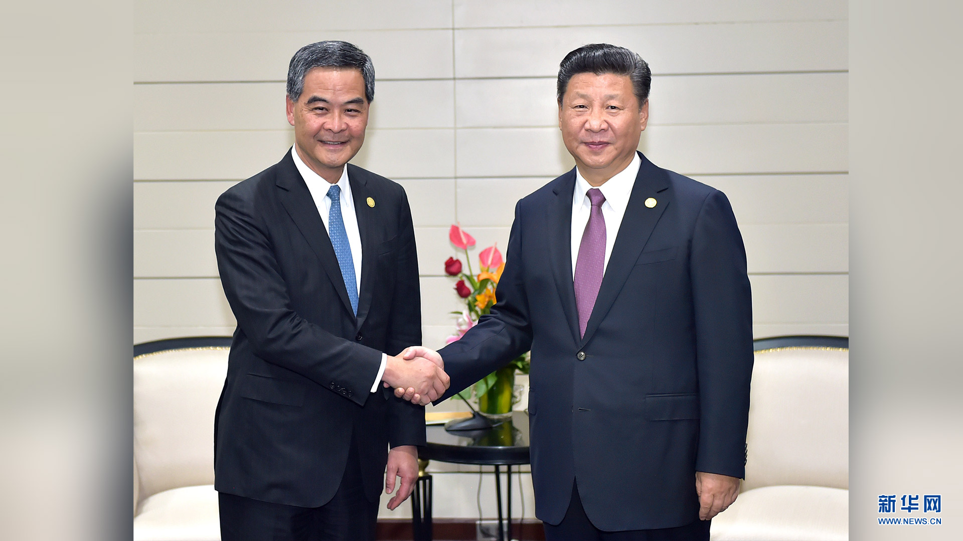 11月20日,國家主席習近平在秘魯首都利馬會見前來出席亞太經合組織第二十四次領導人非正式會議的香港特別行政區行政長官梁振英。新華社記者 李濤 攝2016-11-21