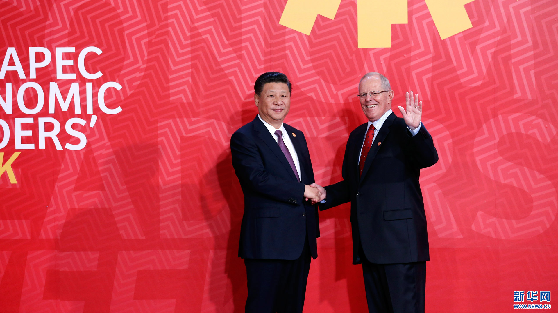 11月20日,亞太經合組織第二十四次領導人非正式會議在秘魯利馬舉行。國家主席習近平出席并發表題為《面向未來開拓進取促進亞太發展繁榮》的重要講話。這是會議開始前,習近平受到秘魯總統庫琴斯基的熱情迎接。 新華社記者 龐興雷 攝2016-11-21