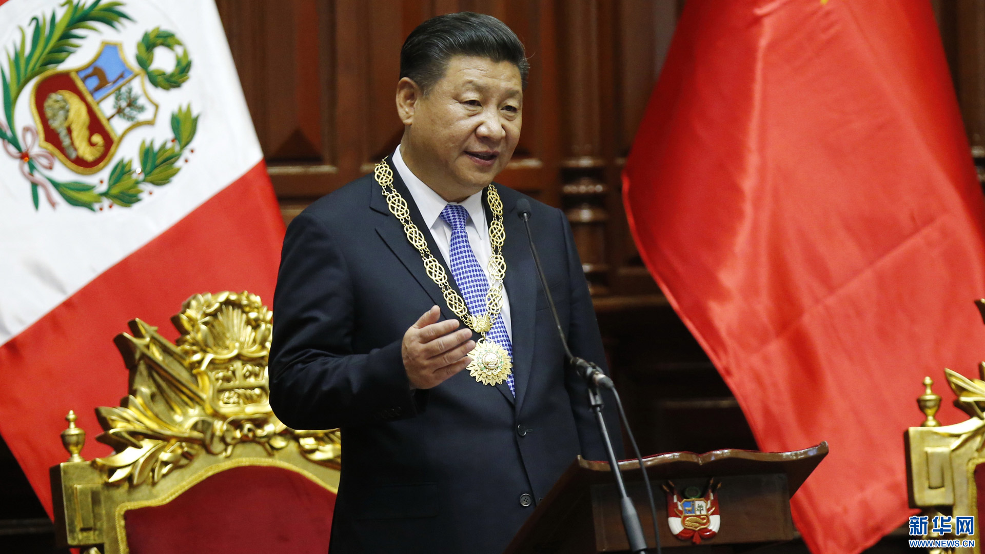 11月21日,國家主席習近平在秘魯國會發表題為《同舟共濟、揚帆遠航,共創中拉關系美好未來》的重要演講。 新華社記者 鞠鵬 攝2016-11-22