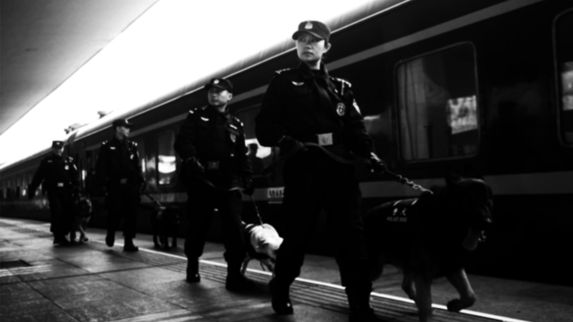 2月5日,劉慧(前)帶著“威利”和隊友在襄陽火車站巡邏。新華社記者 程敏 攝