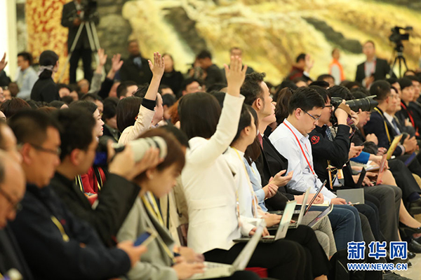 2017年10月17日下午,中國(guó)共產(chǎn)黨第十九次全國(guó)代表大會(huì)新聞發(fā)言人在人民大會(huì)堂三樓金色大廳舉行新聞發(fā)布會(huì),并回答中外記者提問(wèn)。圖為中國(guó)共產(chǎn)黨第十九次全國(guó)代表大會(huì)新聞發(fā)言人庹震。新華網(wǎng) 翟子赫 攝