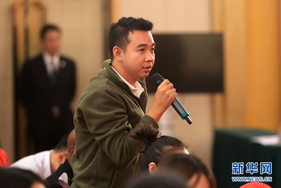 ??? 10月19日,十九大新聞中心舉辦集體采訪,邀請政法戰(zhàn)線代表談全面推進(jìn)依法治國。圖為柬埔寨國家電視臺記者。新華網(wǎng) 郝廣鵬攝