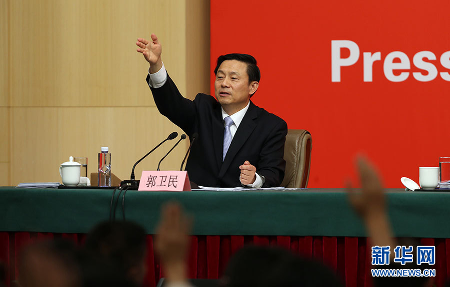 ??? 10月20日,十九大新聞中心舉行記者會,邀請中宣部、中央文明辦、文化部、新聞出版廣電總局相關負責人介紹加強思想道德和文化建設情況,并回答記者提問。圖為主持人郭衛民。新華網 郝廣鵬 攝