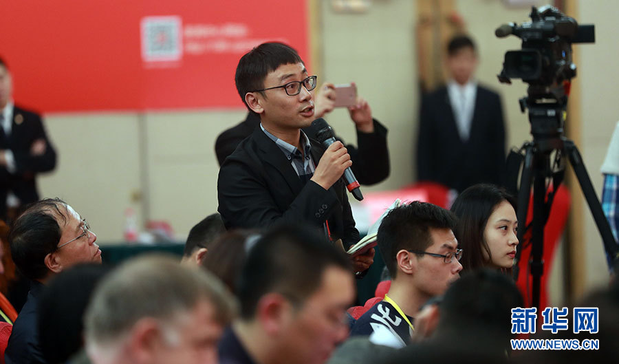 ??? 10月20日,十九大新聞中心舉辦集體采訪活動,主題為“文化發展開創新局面”。圖為光明日報融媒體記者提問。新華網 翟子赫攝