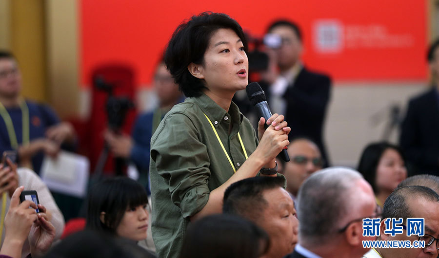 ??? 10月20日,十九大新聞中心舉辦集體采訪活動(dòng),主題為“實(shí)施創(chuàng)新驅(qū)動(dòng)發(fā)展戰(zhàn)略”。圖為中國(guó)國(guó)際廣播電臺(tái)記者提問(wèn)。新華網(wǎng) 郝廣鵬攝