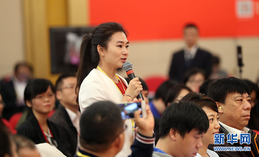 10月22日,十九大新聞中心舉辦記者招待會,邀請教育部黨組書記、部長陳寶生,民政部黨組書記、部長黃樹賢,人力資源社會保障部黨組書記、部長尹蔚民,住房城鄉建設部黨組書記、部長王蒙徽,國家衛生計生委黨組書記、主任李斌介紹滿足人民新期待,保障改善民生有關情況,并回答記者提問。圖為中國教育電視臺記者提問。新華網 郝廣鵬攝