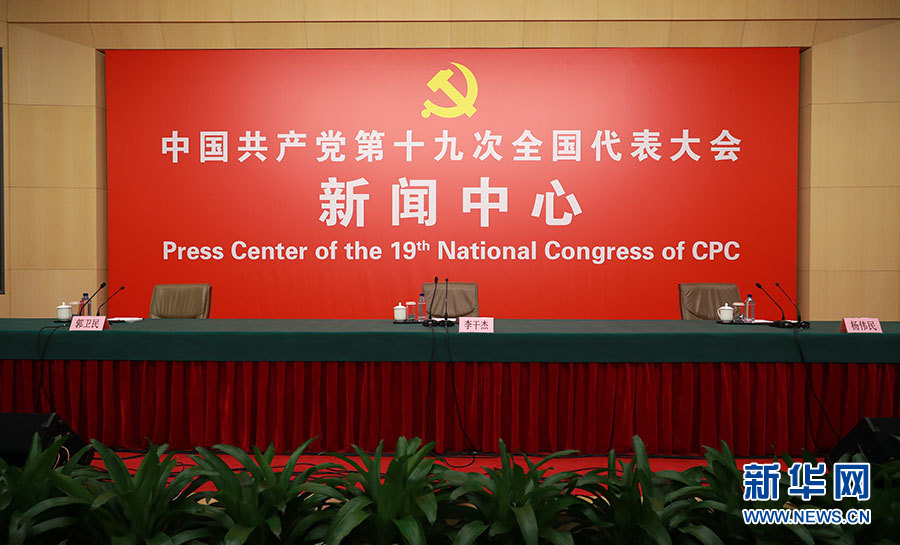 10月23日,十九大新聞中心舉辦記者招待會(huì),邀請中央財(cái)經(jīng)領(lǐng)導(dǎo)小組辦公室副主任楊偉民,環(huán)境保護(hù)部黨組書記、部長李干杰介紹踐行綠色發(fā)展理念,建設(shè)美麗中國有關(guān)情況,并回答記者提問。圖為記者招待會(huì)現(xiàn)場。新華網(wǎng) 郝廣鵬攝
