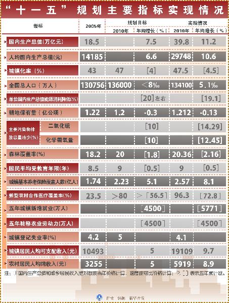 “十一五”規劃主要指標實現情況