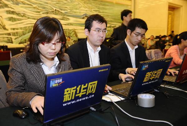 (兩會·人大開幕)記者搶時效