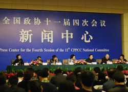 全國(guó)政協(xié)十一屆四次會(huì)議記者會(huì),主題是“政協(xié)委員談文化建設(shè)”。全國(guó)政協(xié)委員馮驥才、姜昆、呂章申、龍瑞、尹力、韓紅出席并回答記者的提問(wèn)。