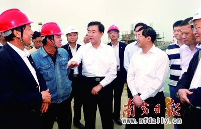 21日,汪洋在饒平縣潮州港亞太通用碼頭與企業負責人交談。南方日報記者 王輝 攝