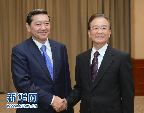 溫家寶會見哈薩克斯坦總理艾哈邁托夫和蒙古國總理阿勒坦呼亞格