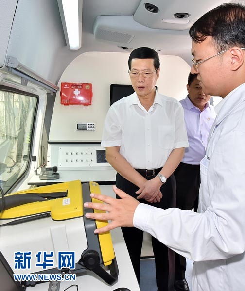 ??? 6月5日,中共中央政治局常委、國務(wù)院副總理張高麗到中國環(huán)境科學研究院和中國環(huán)境監(jiān)測總站調(diào)研。這是張高麗在水質(zhì)應(yīng)急監(jiān)測車上了解水質(zhì)監(jiān)測預警工作情況。新華社記者 李濤 攝