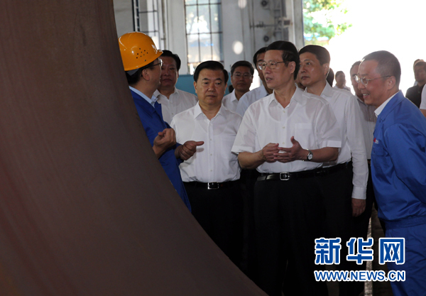 ??? 這是7月4日,張高麗來到甘肅蘭州蘭石集團有限公司車間考察企業(yè)的生產經營情況。 新華社記者劉衛(wèi)兵攝