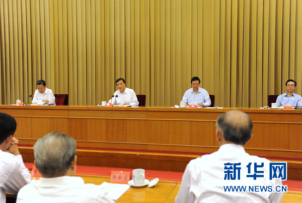 ??? 9月15日,黨的群眾路線教育實踐活動理論研討會在北京召開。中共中央政治局常委、中央黨的群眾路線教育實踐活動領導小組組長劉云山出席會議并講話。新華社記者 饒愛民 攝