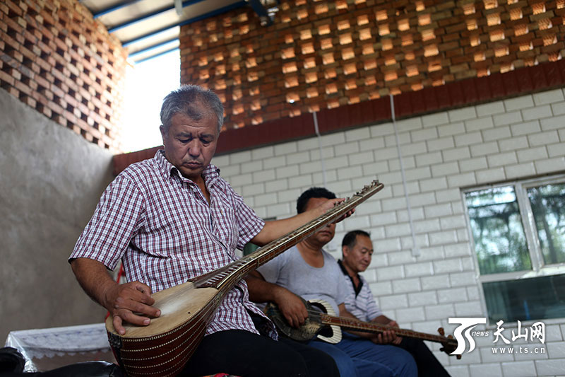 2013年以來,鄯善縣拿出資金,在全縣每個自然村建立農民“文化大院”,給農民提供文化娛樂的場所,十二木卡姆也自然成為大院里必備的節目,老藝人們忙碌了不少。最近正值齋月期間,村民間的文化活動照舊開展,蘇來曼 阿不都時常還要去周圍村里演出,最讓他高興的是,十二木卡姆這門古老的藝術,在今天依舊被大家重視和喜愛,這一點對于他來說,比金錢更重要。“只要大家還喜歡十二木卡姆,在平日里能見到它,它的傳承和發展就有不竭動力。” 蘇來曼 阿不都說。