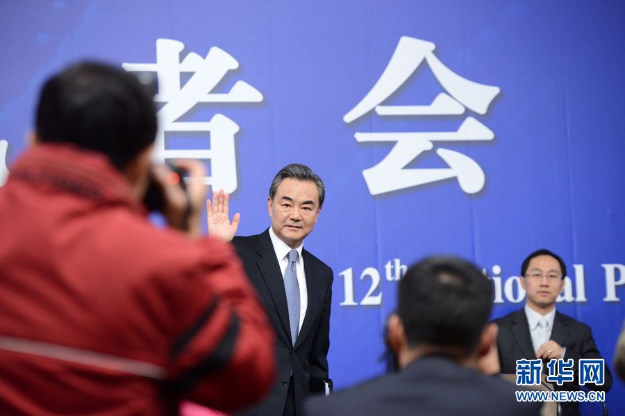 ????十二屆全國人大三次會議新聞中心于3月8日(星期日)10時在梅地亞中心多功能廳舉行記者會,邀請外交部部長王毅就中國的外交政策和對外關系相關問題回答中外記者提問。圖為外交部部長王毅同記者揮手道別。新華網/中國政府網?郭小天 攝