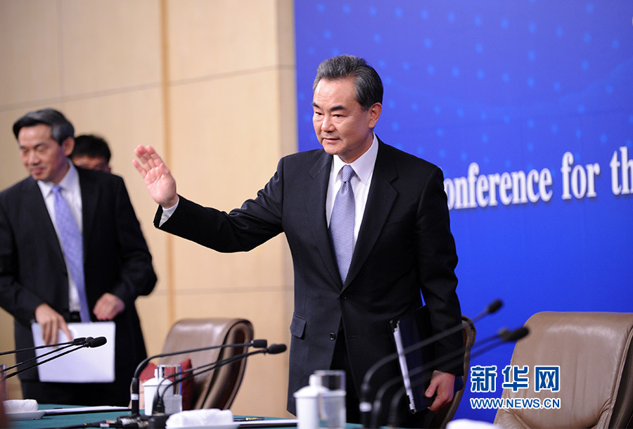 王毅同記者揮手道別