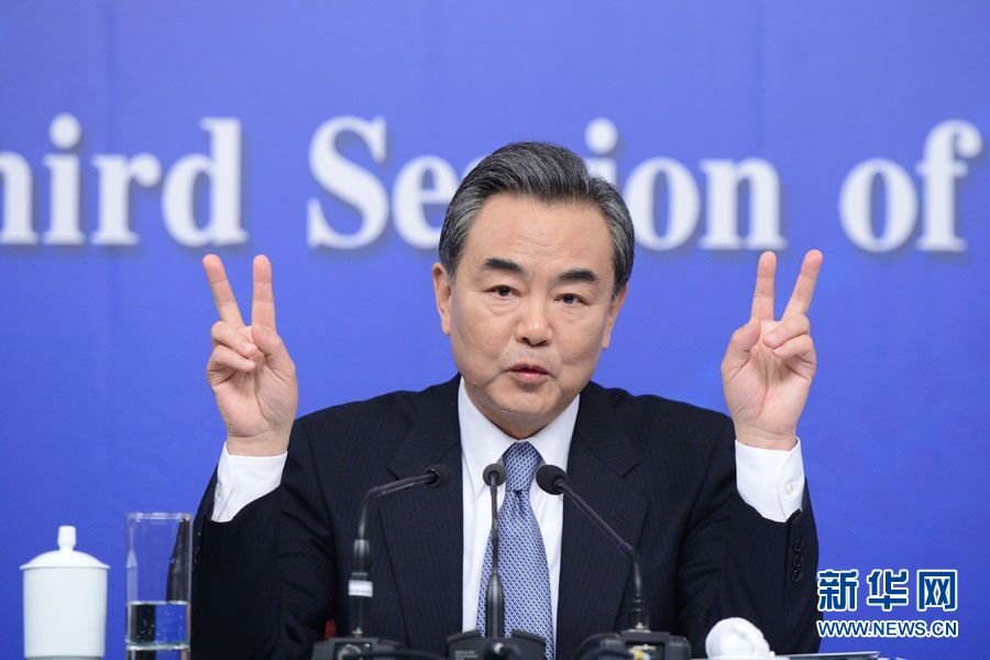 ??? 十二屆全國人大三次會議新聞中心于3月8日(星期日)10時在梅地亞中心多功能廳舉行記者會,邀請外交部部長王毅就中國的外交政策和對外關系相關問題回答中外記者提問。圖為外交部部長王毅回答記者提問。新華網/中國政府網 郭小天 攝