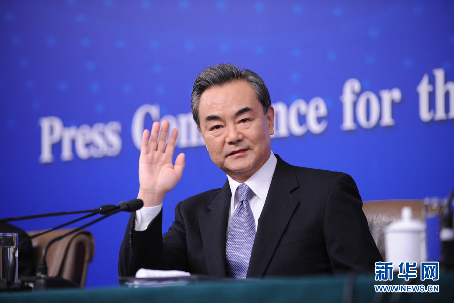 王毅向記者揮手致意