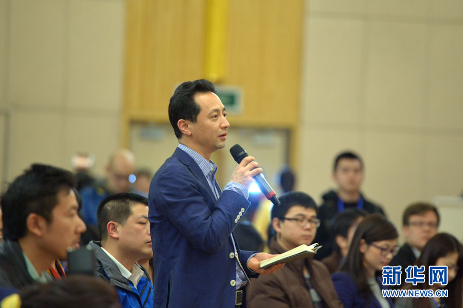 ????十二屆全國人大三次會議新聞中心于3月12日在梅地亞中心多功能廳舉行記者會,邀請中國人民銀行行長周小川,中國人民銀行副行長、國家外匯管理局局長易綱,中國人民銀行副行長潘功勝,絲路基金有限責(zé)任公司董事長金琦就金融改革與發(fā)展回答中外記者提問。圖為法制日報和法制網(wǎng)記者提問。新華網(wǎng)/中國政府網(wǎng) 郭小天攝