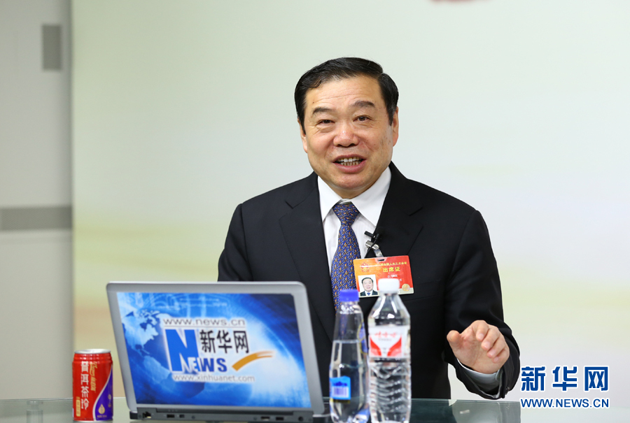 ??? 2015年3月13日,全國人大代表、內蒙古森工集團董事長張學勤做客新華會客廳。圖為張學勤解答主持人問題。新華網 李江 攝?