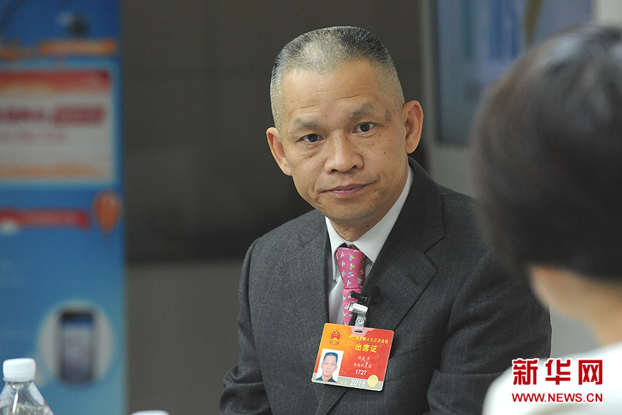 2015年3月13日,全國人大代表、湖南科力遠新能源股份有限公司董事長鐘發平做客新華會客廳。新華網?賈振 攝