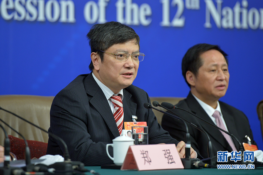 ????3月13日上午10時,十二屆全國人大三次會議新聞中心邀請四川大學校長謝和平、江蘇省教育廳廳長沈健、廣東省教育廳廳長羅偉其、海南大學校長李建保、貴州大學校長鄭強就完善高等教育治理結構的相關問題回答中外記者提問。圖為貴州大學校長鄭強答記者問。新華網(wǎng)/中國政府網(wǎng) 郭小天 攝