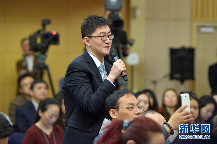 ????3月13日上午10時(shí),十二屆全國人大三次會(huì)議新聞中心邀請(qǐng)四川大學(xué)校長謝和平、江蘇省教育廳廳長沈健、廣東省教育廳廳長羅偉其、海南大學(xué)校長李建保、貴州大學(xué)校長鄭強(qiáng)就完善高等教育治理結(jié)構(gòu)的相關(guān)問題回答中外記者提問。圖為中央人民廣播電臺(tái)、央廣網(wǎng)記者提問。新華網(wǎng)/中國政府網(wǎng) 郭小天 攝