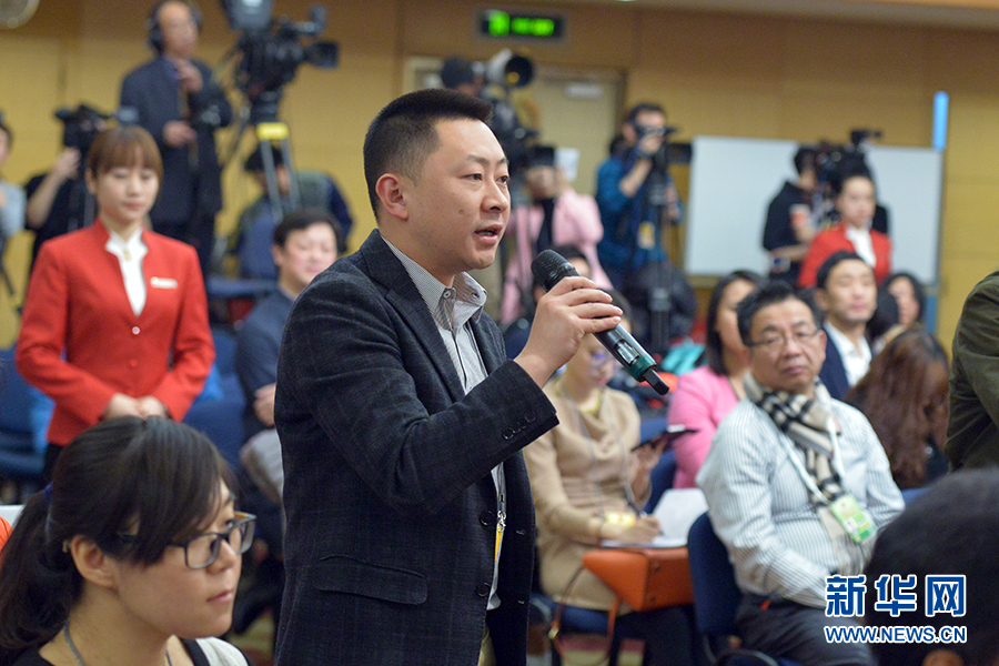 ????3月13日上午10時,十二屆全國人大三次會議新聞中心邀請四川大學校長謝和平、江蘇省教育廳廳長沈健、廣東省教育廳廳長羅偉其、海南大學校長李建保、貴州大學校長鄭強就完善高等教育治理結構的相關問題回答中外記者提問。圖為四川電視臺記者提問。新華網/中國政府網 郭小天 攝