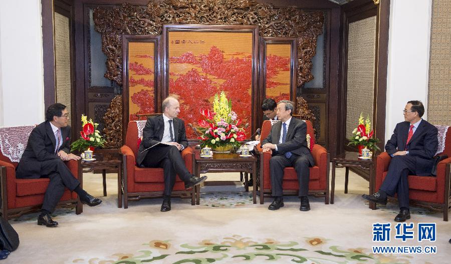 ??? 6月7日,中國(guó)國(guó)務(wù)院副總理馬凱在北京中南海紫光閣會(huì)見國(guó)際證監(jiān)會(huì)組織理事會(huì)主席、香港證監(jiān)會(huì)行政總裁歐達(dá)禮和香港證監(jiān)會(huì)主席唐家成。新華社記者 謝環(huán)馳 攝