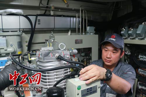 張如意在調試“和諧號”空氣壓縮機。中工網記者 葛文琦攝