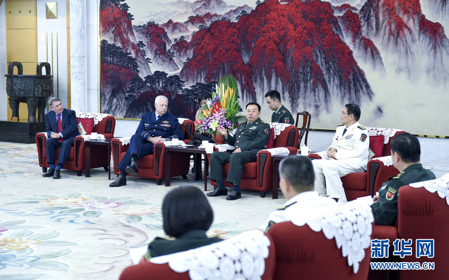 10月12日,中央軍委副主席范長龍在北京會見來華參加中澳第19次防務戰略磋商的澳大利亞國防軍司令賓斯金和國防部秘書長理查森。新華社記者 張領 攝