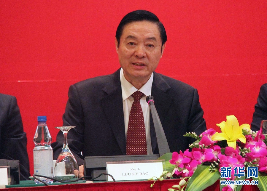 12月23日,在越南首都河內,中共中央政治局委員、中央書記處書記、中宣部部長劉奇葆在第十二次中越兩黨理論研討會開幕式上作主旨報告。 新華社記者樂艷娜攝