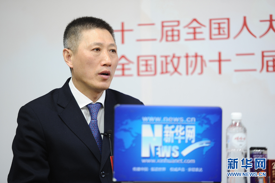 ??? 2016年3月13日,全國人大代表,煙臺張裕葡萄釀酒股份有限公司總經理周洪江做客新華網兩會訪談。圖為周洪江在訪談現場。新華網 盧志佳 攝