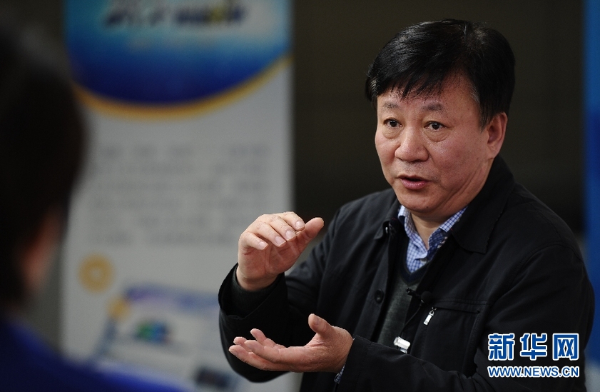2016年3月14日,全國政協委員,天津達仁堂京萬紅藥業有限公司總經理劉文偉做客新華網2016全國兩會特別訪談。圖為劉文偉回答主持人提問。新華網 賈海元 攝