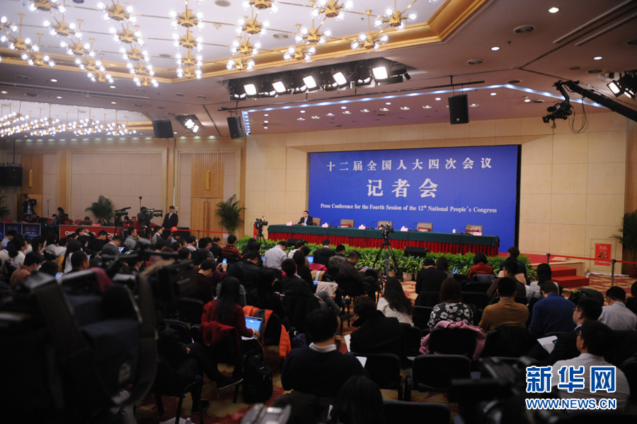 十二屆全國人大四次會(huì)議新聞中心于3月14日(星期一)10時(shí)在梅地亞中心多功能廳舉行記者會(huì),邀請(qǐng)交通運(yùn)輸部部長(zhǎng)楊傳堂、交通運(yùn)輸部運(yùn)輸服務(wù)司司長(zhǎng)劉小明、北京交通發(fā)展研究中心主任郭繼孚就“深化出租汽車改革與發(fā)展”的相關(guān)問題回答中外記者的提問。圖為開始前的記者會(huì)現(xiàn)場(chǎng)。新華網(wǎng)/中國政府網(wǎng) 陳杰 攝