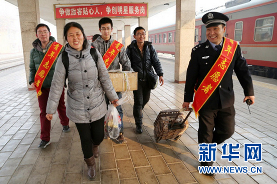 2月14日,侯馬站派出所民警為進出站旅客提供幫助。新華網 田明 攝