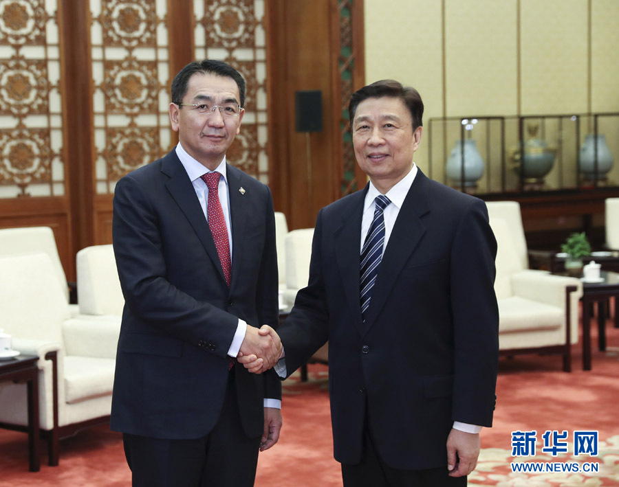 2月20日,中國國家副主席李源潮在北京會見來華訪問的蒙古國外長蒙赫奧爾吉勒。 新華社記者 龐興雷 攝