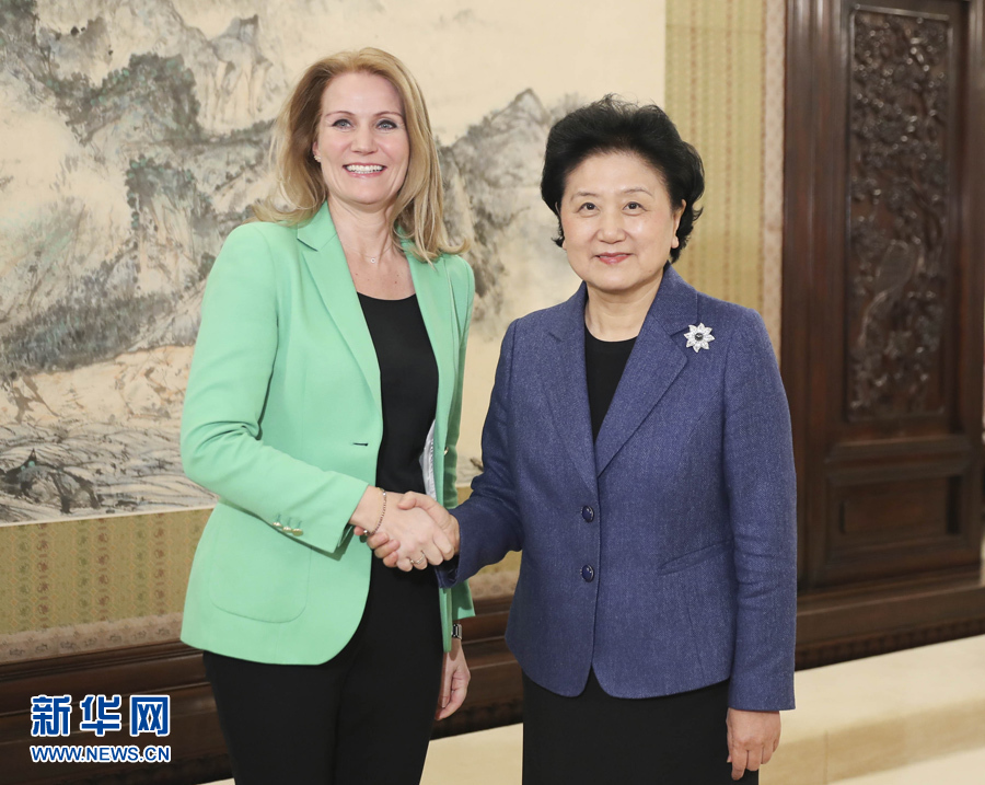 3月24日,國務院副總理劉延東在北京中南海會見國際救助兒童會首席執行官、丹麥前首相赫勒·托寧-施密特。 新華社記者 丁林 攝