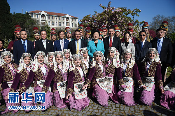 4月19日,在土耳其伊斯坦布爾,中國國務院副總理劉延東(二排右五)與海峽大學師生合影。新華社記者賀燦鈴攝
