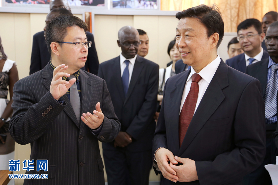 ??? 5月8日,在塞內加爾達喀爾,正在塞內加爾訪問的中國國家副主席李源潮(前右)參觀達喀爾大學孔子學院,并出席新教學樓揭牌儀式。新華社記者邢建橋攝