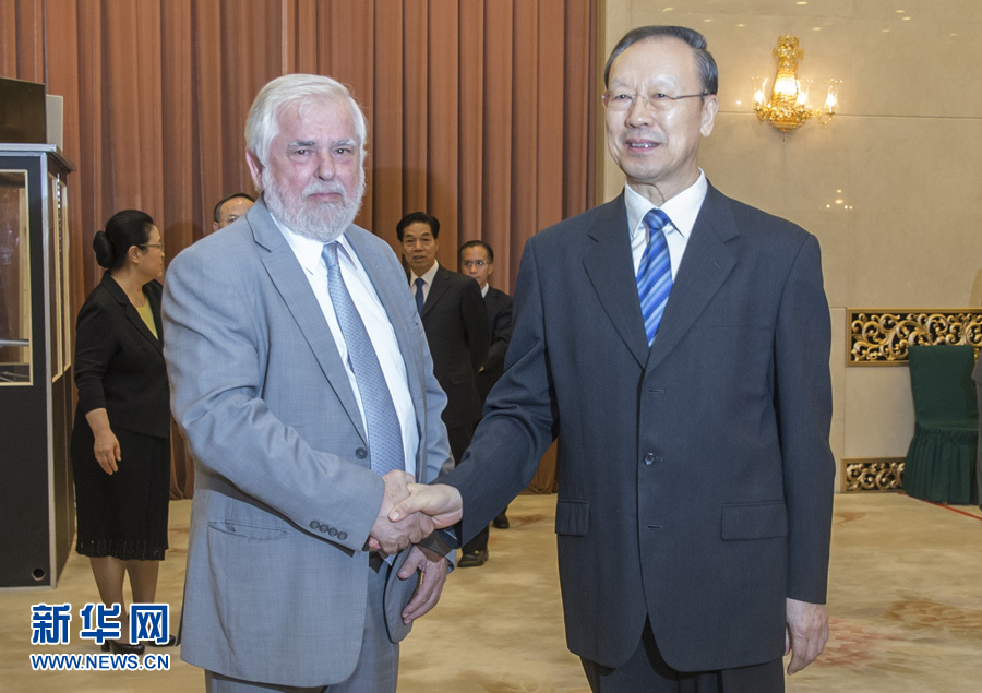 6月28日,中共中央書記處書記、全國政協副主席、中國經濟社會理事會主席杜青林在北京會見歐盟經濟社會委員會主席達西斯。 新華社記者崔新鈺 攝