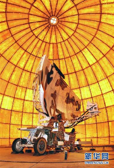 駐守藏北某雷達(dá)站擔(dān)負(fù)節(jié)日值班工作的官兵,精心檢查維護雷達(dá)天線,確保“千里眼”明亮(2011年1月30日攝)。新華社發(fā)(劉應(yīng)華 攝)
