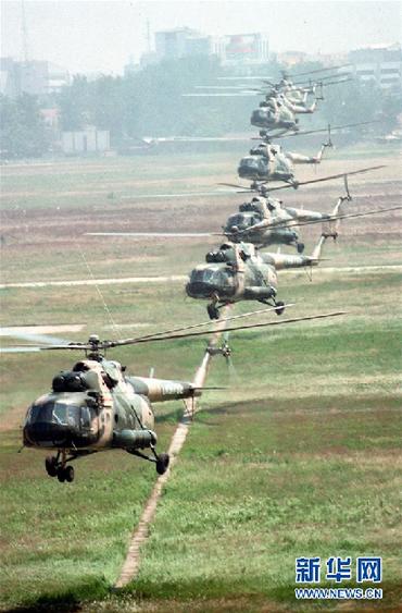 1999年6月7日,陸軍航空兵在進行飛行訓練。新華社發